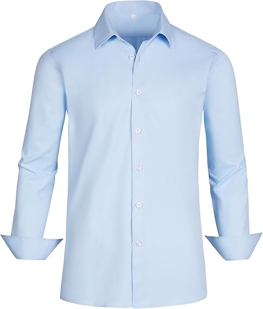 Men's Dress Shirts Regular Fit Solid Long Sleeve Wrinkle-Free Formal Shirt Business Casual Button Down Shirts
