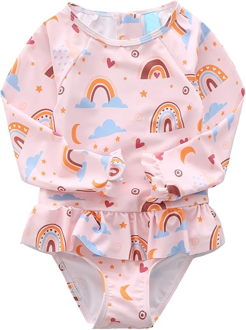 Aisyee Baby Girls One Piece Swimsuits Long Sleeve Rash Guard Swimshirts