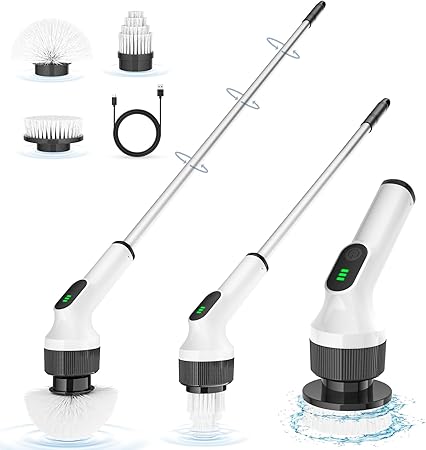 Electric Spin Scrubber, Shower Cleaner Brush, Shower Scrubber with Long Handle 53.2inch, 2H Fast Charge, IPX7 Waterproof, Bathroom Cleaning Brush 2 Adjustable Speeds