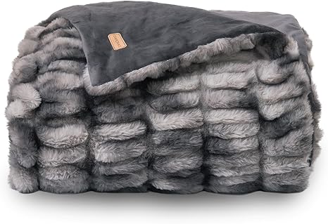 EVERGRACE Faux Rabbit Fur Throw Blanket, Luxurious Soft Bubble Fluffy Blanket, Ruched Cozy Fuzzy Throw Blankets 50x60 in, Plush Warm Reversible Velvet Mink Blanket for Couch Bed Sofa, Gray
