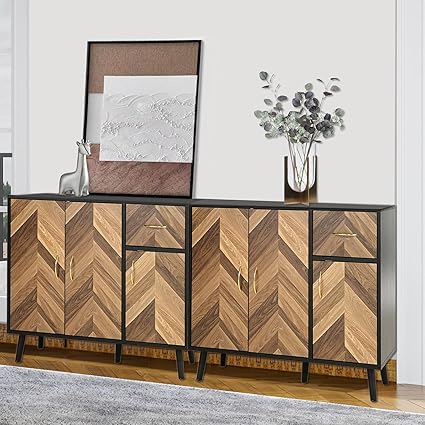 Set of 2 Sideboard Buffet Cabinet with Storage, Accent Storage Cabinet with 6 Doors, 2 Drawers & Shelves Modern Floor Cabinet for Hallway, Office, Bedroom, Living Room, Black