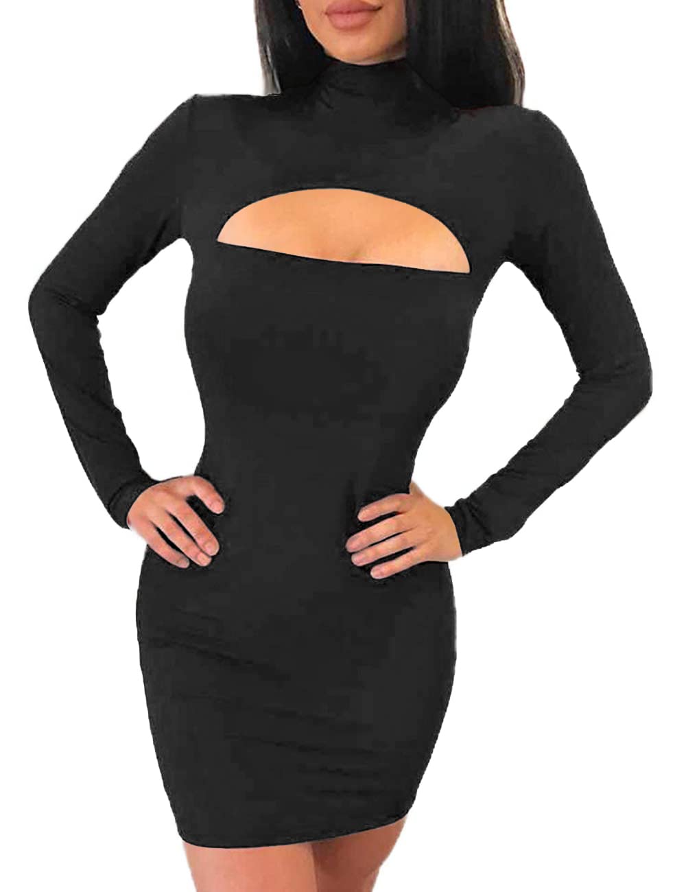 Details: Haola Women's Long Sleeve Cut Out Front Sexy Club Bodycon Dress Party Mini Bandage Dress