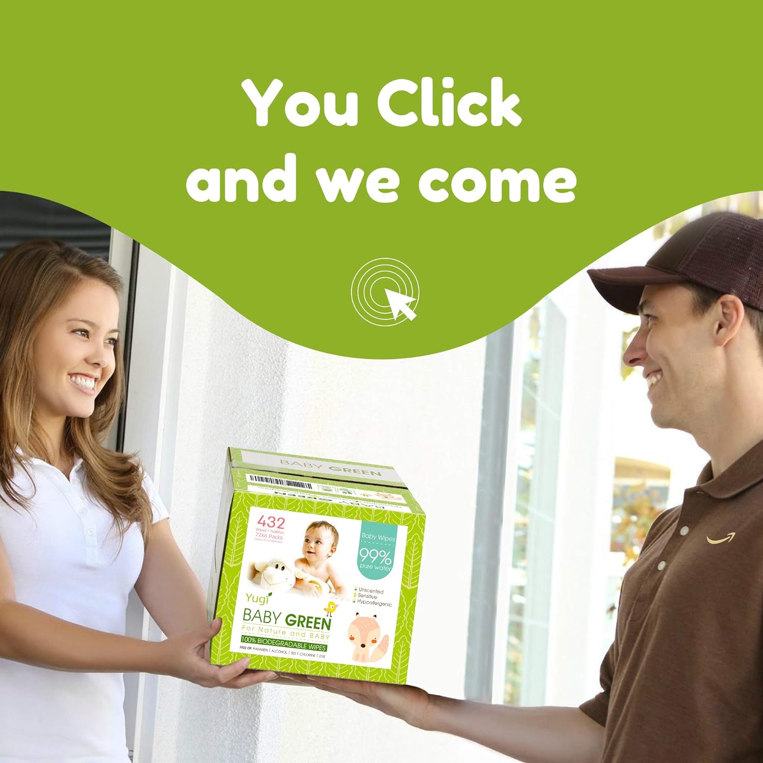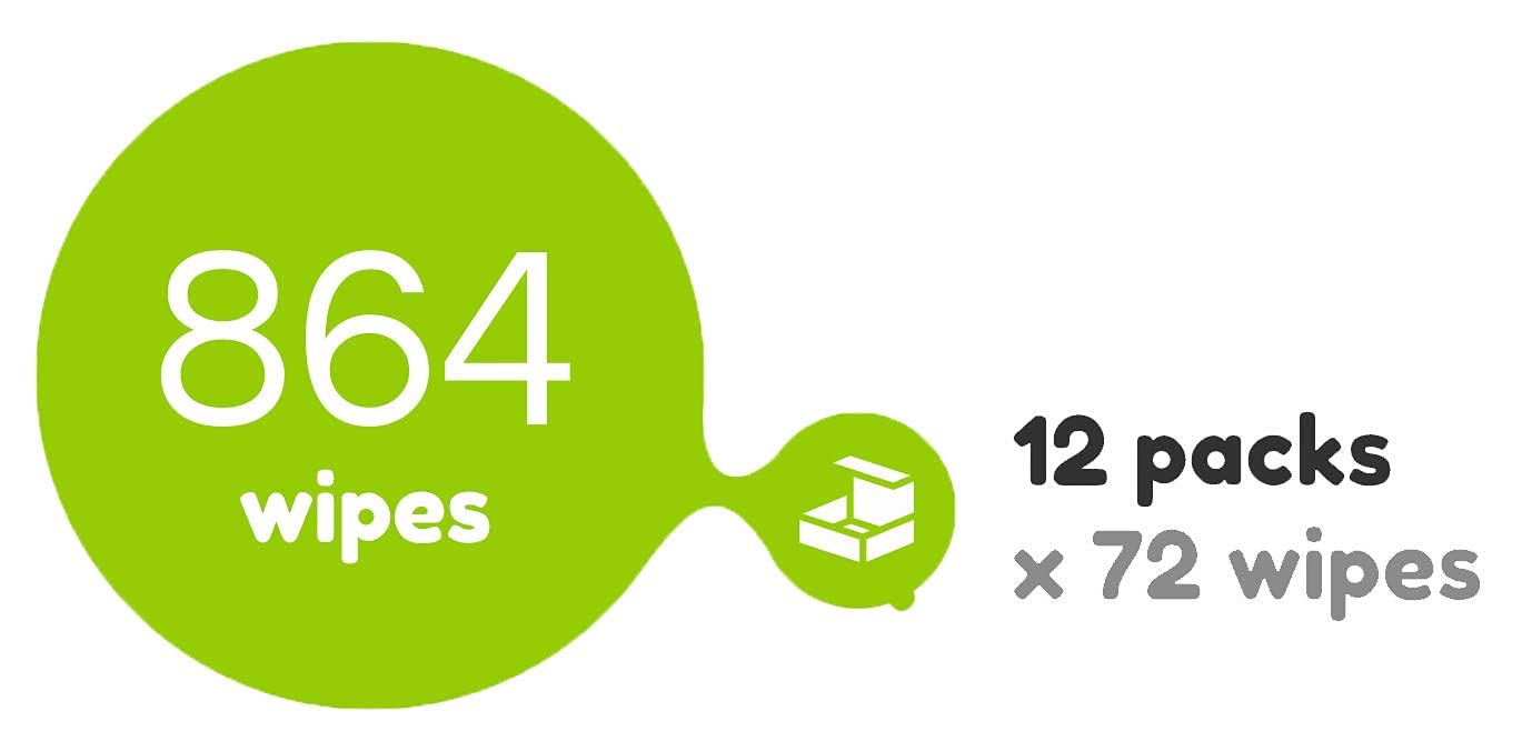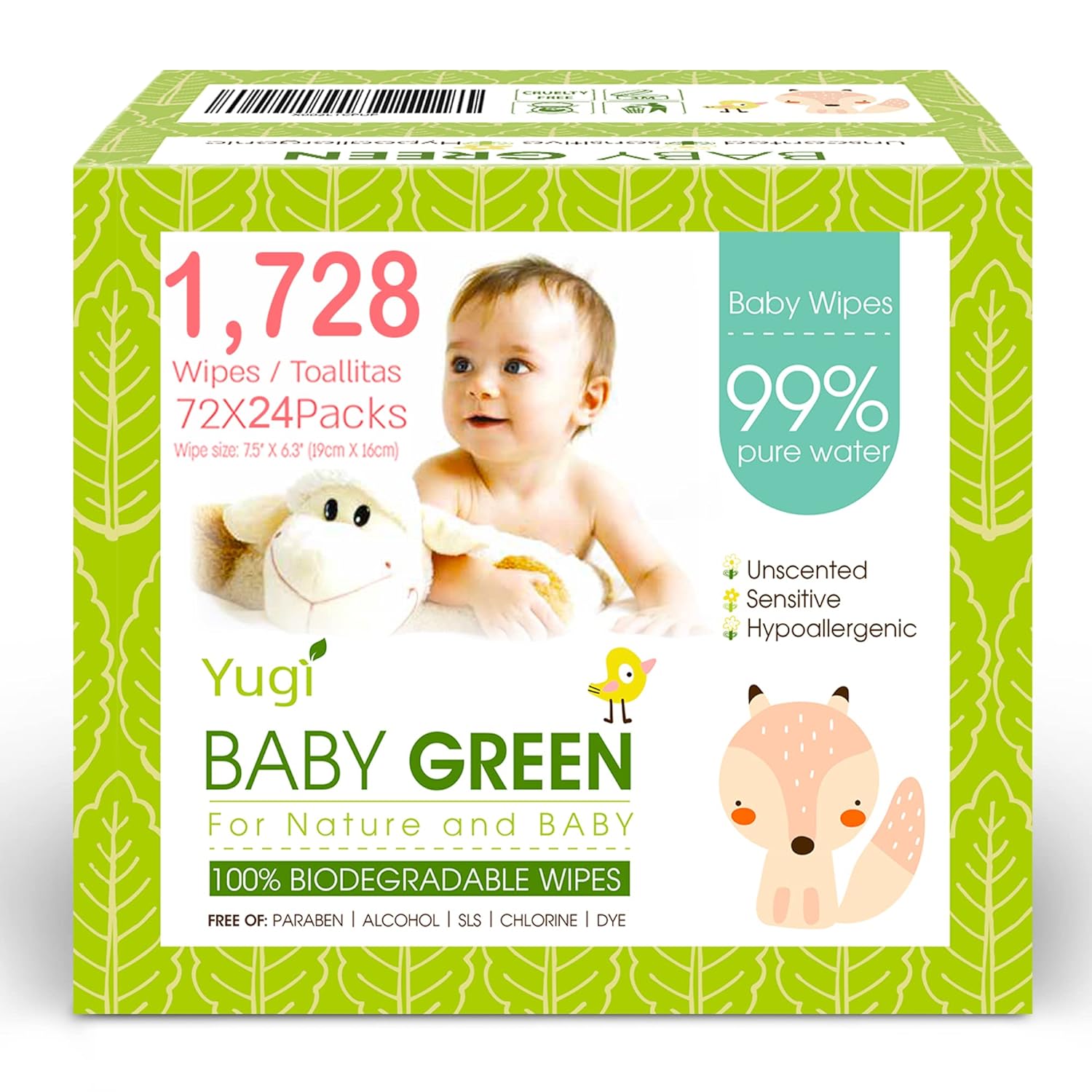Yugi Baby Green Wipes Unscented Compostable Biodegradable and Organic– Value Pack (12 Packs of 72) 864 for Sensitive Skin & Nose