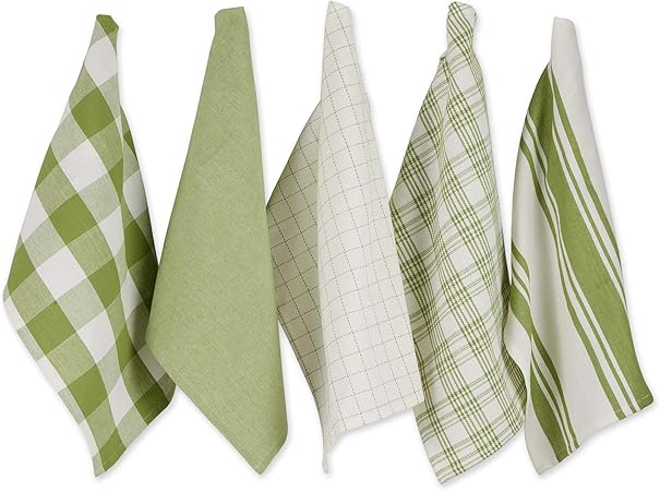 DII Everyday Basic Kitchen Collection Large Woven Cotton Dishtowel/Tea Towel Set, 18x28, Antique Green, 5 Count