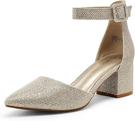 DREAM PAIRS ANNEE Pointed Toe Low Chunky Heels Pump Shoes