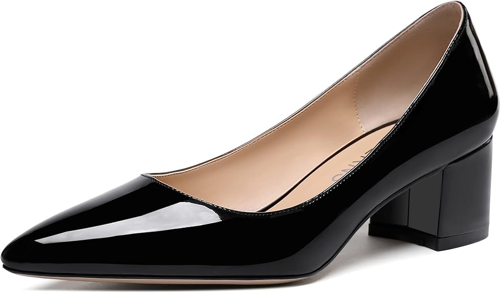 WAYDERNS Women's Pointed Toe Patent Leather Slip On Chunky Low Heel Pumps Office Work Dress Court Shoes 2 Inch