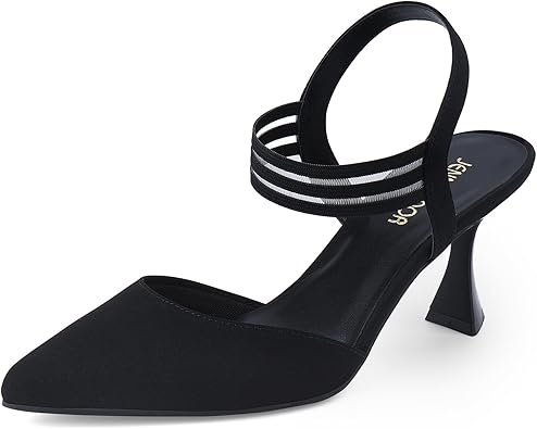 JENN ARDOR Women's Closed Toe Kitten Heels SlingBack Pumps Elastic Ankle Strap Sandals Pointed Toe Wedding Prom Dress Shoes