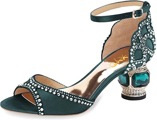 XYD Women Bridal Evening Heels Peep Toe Rhinestone Studs Block Low Heeled Sandals Ankle Strap Elegant Shoes for Wedding Party Dinner