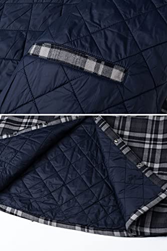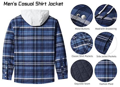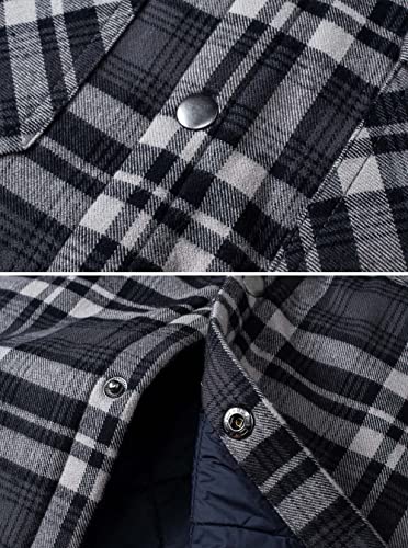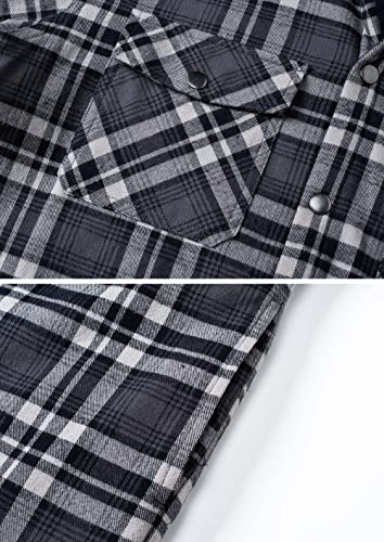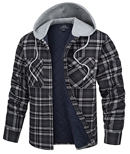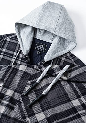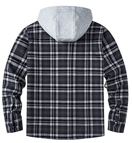TACVASEN Men's Plaid Hooded Shirts Casual Long Sleeve Lightweight Shirt Jackets, Black Grey, L