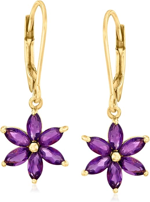 Ross-Simons 1.60 ct. t.w. Amethyst Flower Drop Earrings in 18kt Gold Over Sterling