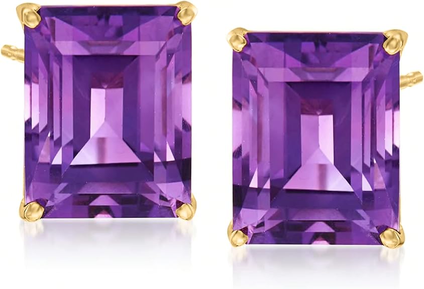 Ross-Simons 10.00 ct. t.w. Emerald-Cut Amethyst Stud Earrings in 14kt Yellow Gold