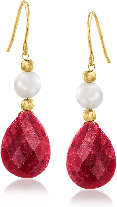 Ross-Simons 20.00 ct. t.w. Gemstone and Cultured Pearl Earrings in 14kt Yellow Gold