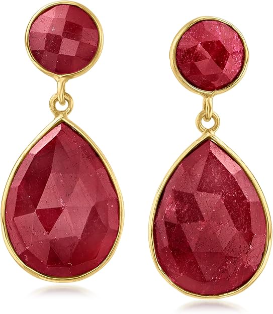 Ross-Simons 22.80 ct. t.w. Ruby Drop Earrings in 18kt Gold Over Sterling