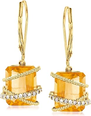 Ross-Simons 6.25 ct. t.w. Citrine and .12 ct. t.w. Diamond Drop Earrings in 14kt Yellow Gold