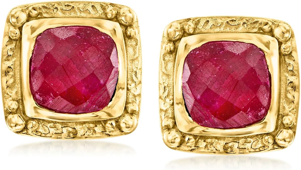 Ross-Simons 8.25 ct. t.w. Ruby Etruscan-Style Earrings in 18kt Gold Over Sterling