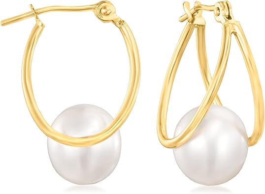 Ross-Simons 8-9mm Cultured Pearl Double-Hoop Earrings in 14kt Yellow Gold. 3/4