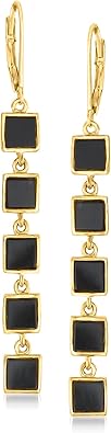 Ross-Simons Black Onyx Square-Link Drop Earrings in 18kt Gold Over Sterling