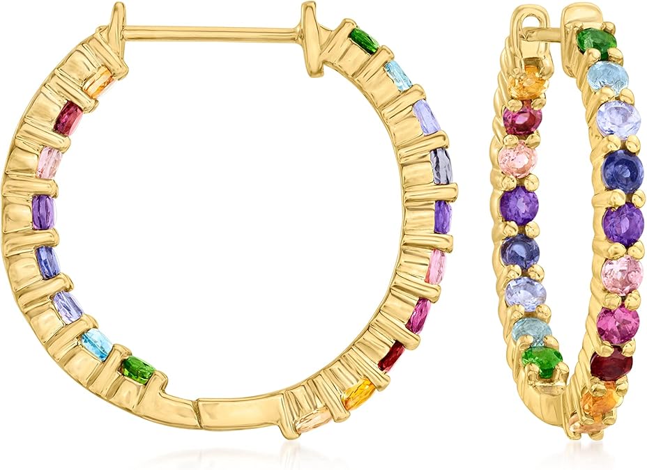 Ross-Simons Gemstone Hoop Earrings in Sterling Silver