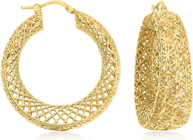 Ross-Simons Italian 18kt Gold Over Sterling Openwork Hoop Earrings