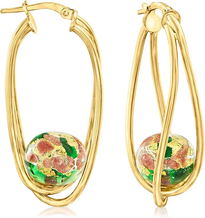 Ross-Simons Italian Multicolored Murano Glass Bead Double-Hoop Earrings in 18kt Gold Over Sterling