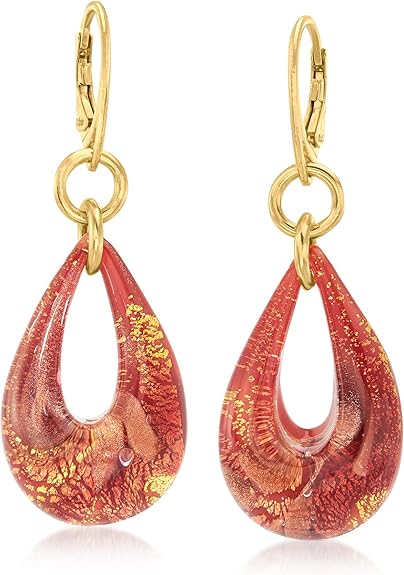 Ross-Simons Italian Murano Glass Teardrop Earrings in 18kt Gold Over Sterling