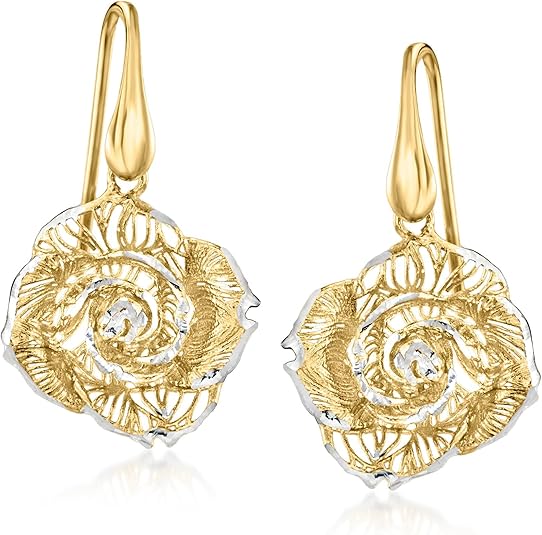 Ross-Simons Italian Sterling Silver and 18kt Gold Over Sterling Filigree Rose Drop Earrings