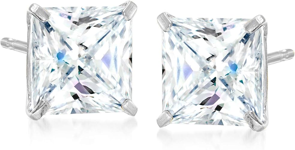 Ross-Simons Princess-Cut CZ Stud Earrings in 14kt White Gold