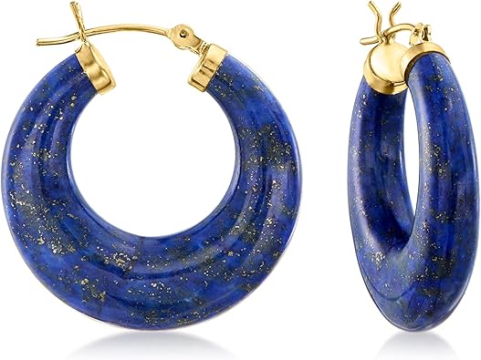 Ross-Simons Round Gemstone Hoop Earrings in 14kt Gold 1 1/8 inches