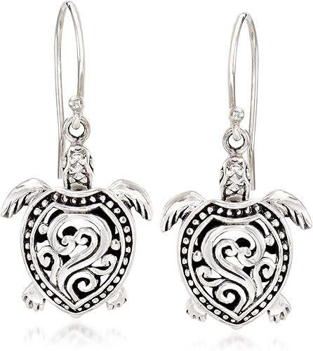 Ross-Simons Sterling Silver Filigree Turtle Drop Earrings