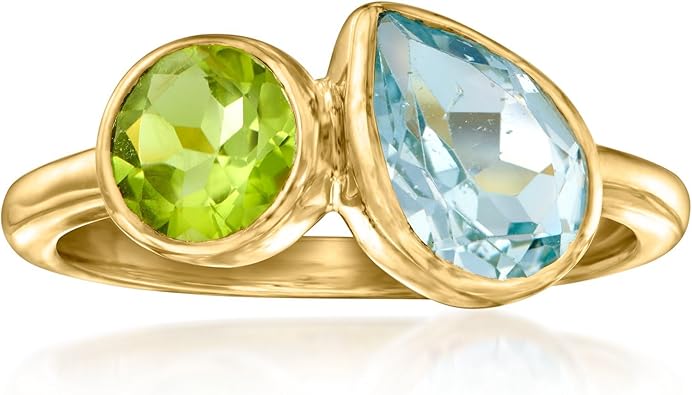 Ross-Simons 1.30 Carat Sky Blue Topaz and .60 Carat Peridot Toi Et Moi Ring in 18kt Gold Over Sterling