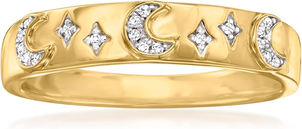 Ross-Simons Diamond-Accented Moon and Star Ring in 18kt Gold Over Sterling