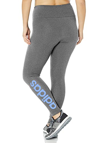 adidas Women's Plus Size Essentials High-Waisted Logo Leggings, Dark Grey Heather/Blue Fusion, 1X