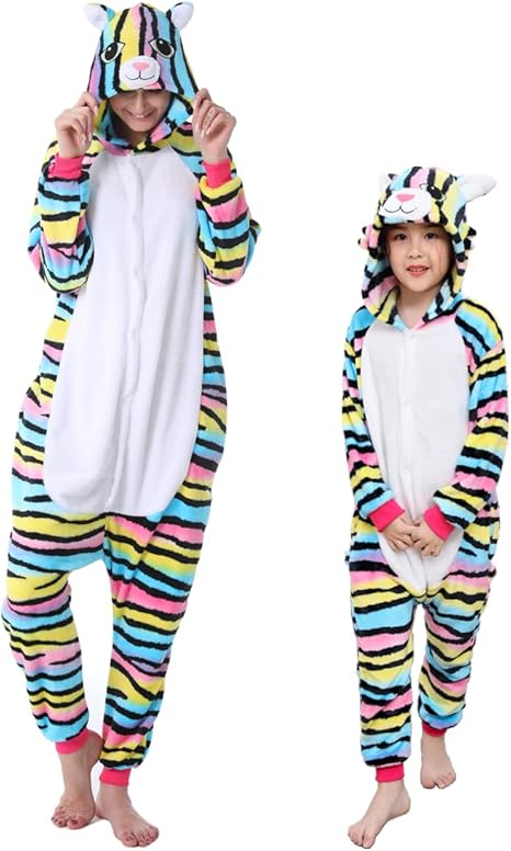 Adult Kid Animal Color Cat Onesies Pajamas Cute Cosplay Halloween Xmas Costume Winter Girls Hooded Sleepwear