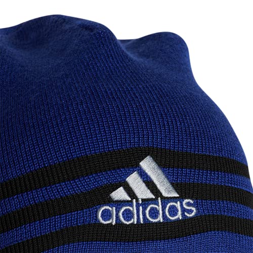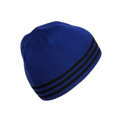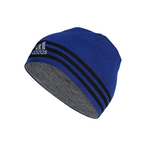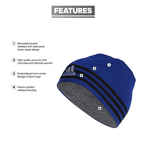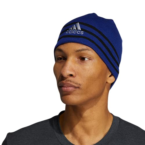 Details: Switch up your look whenever you want. this men's soft, reversible beanie keeps you warm during cold weather workouts. one side looks sleek with knit adidas details. the other adds texture with an embroidered logo and debossed 3-stripes.