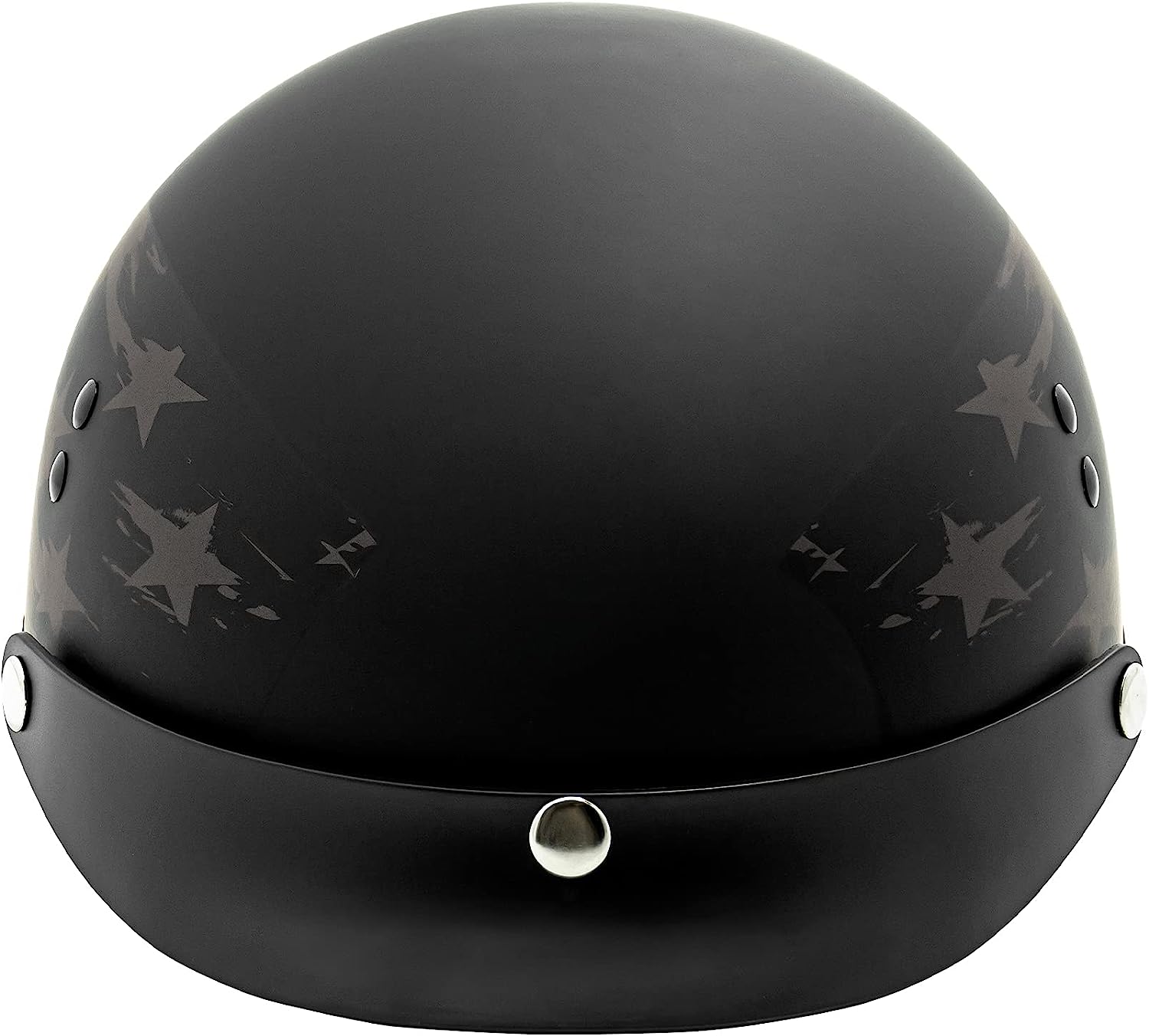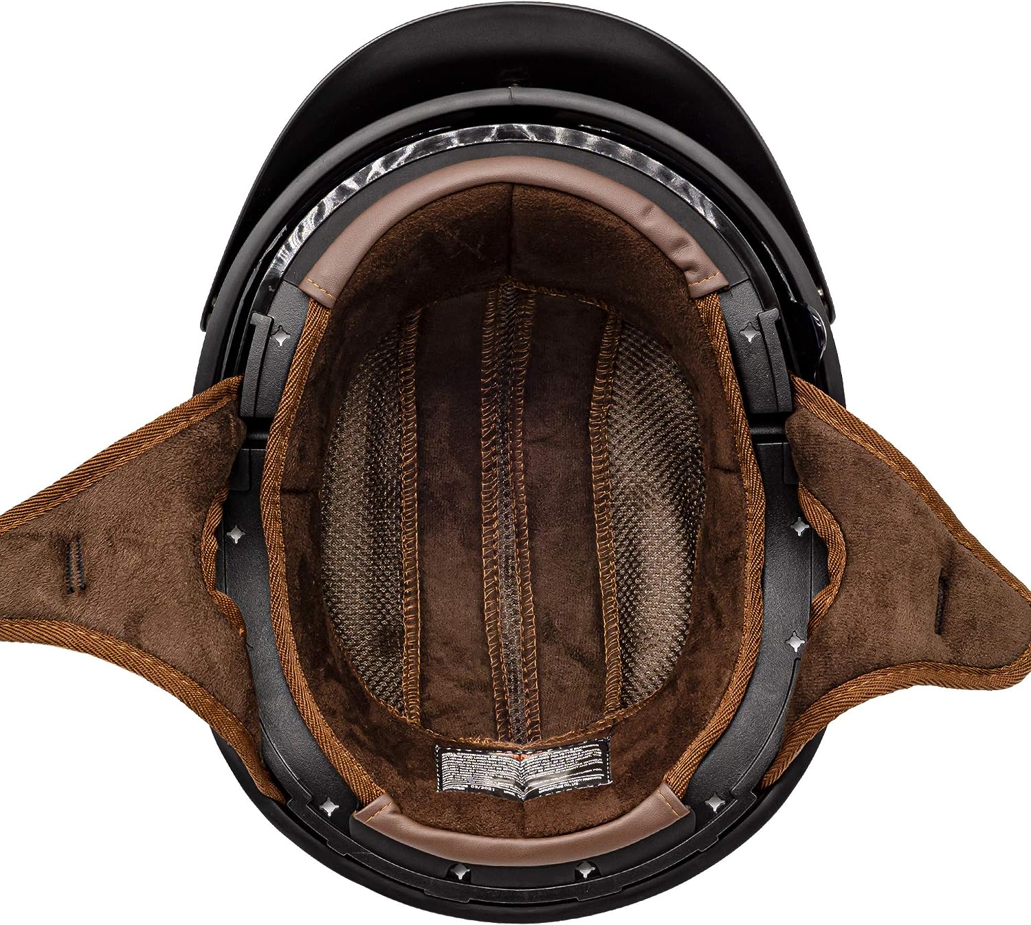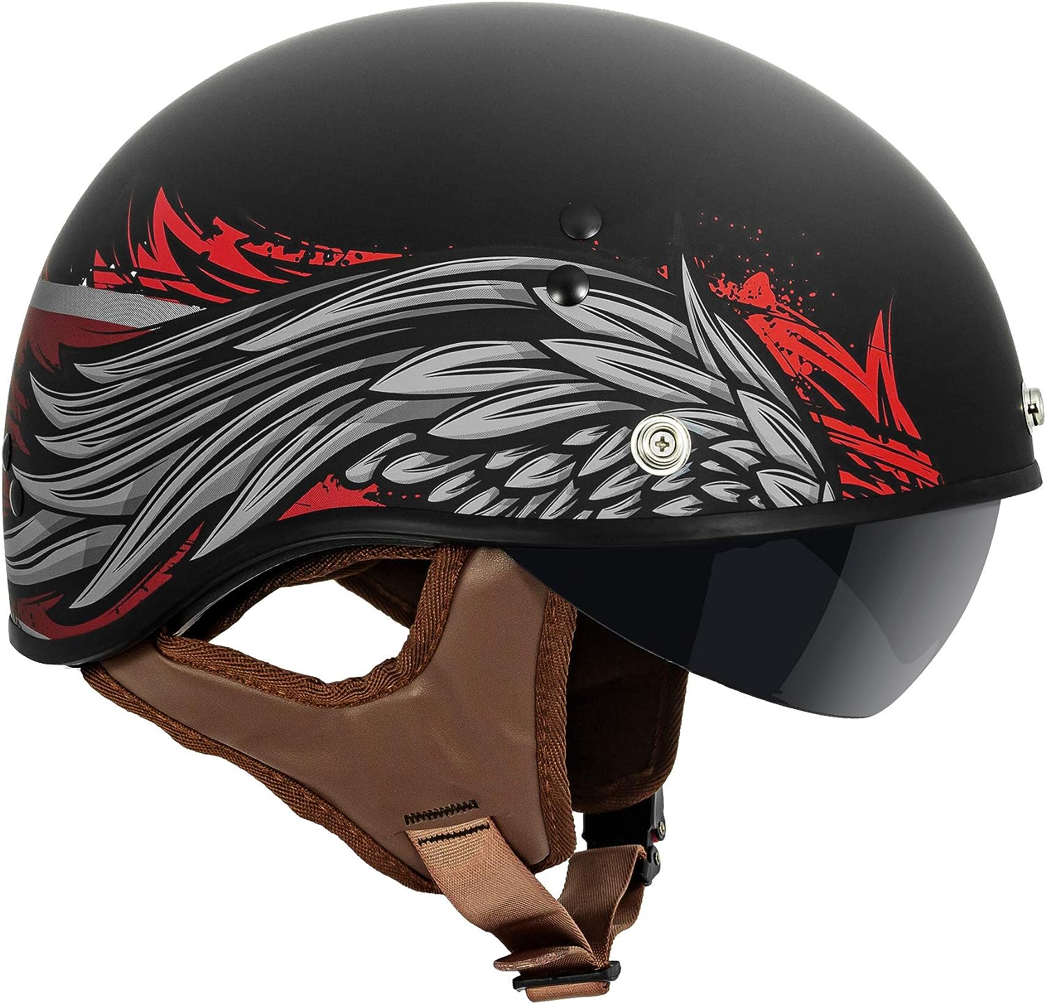 VCAN Cruiser Solid Flat Black Half Face Motorcycle Helmet with Drop-Down Sun Visor, Removable Peak and Quick Release Buckle