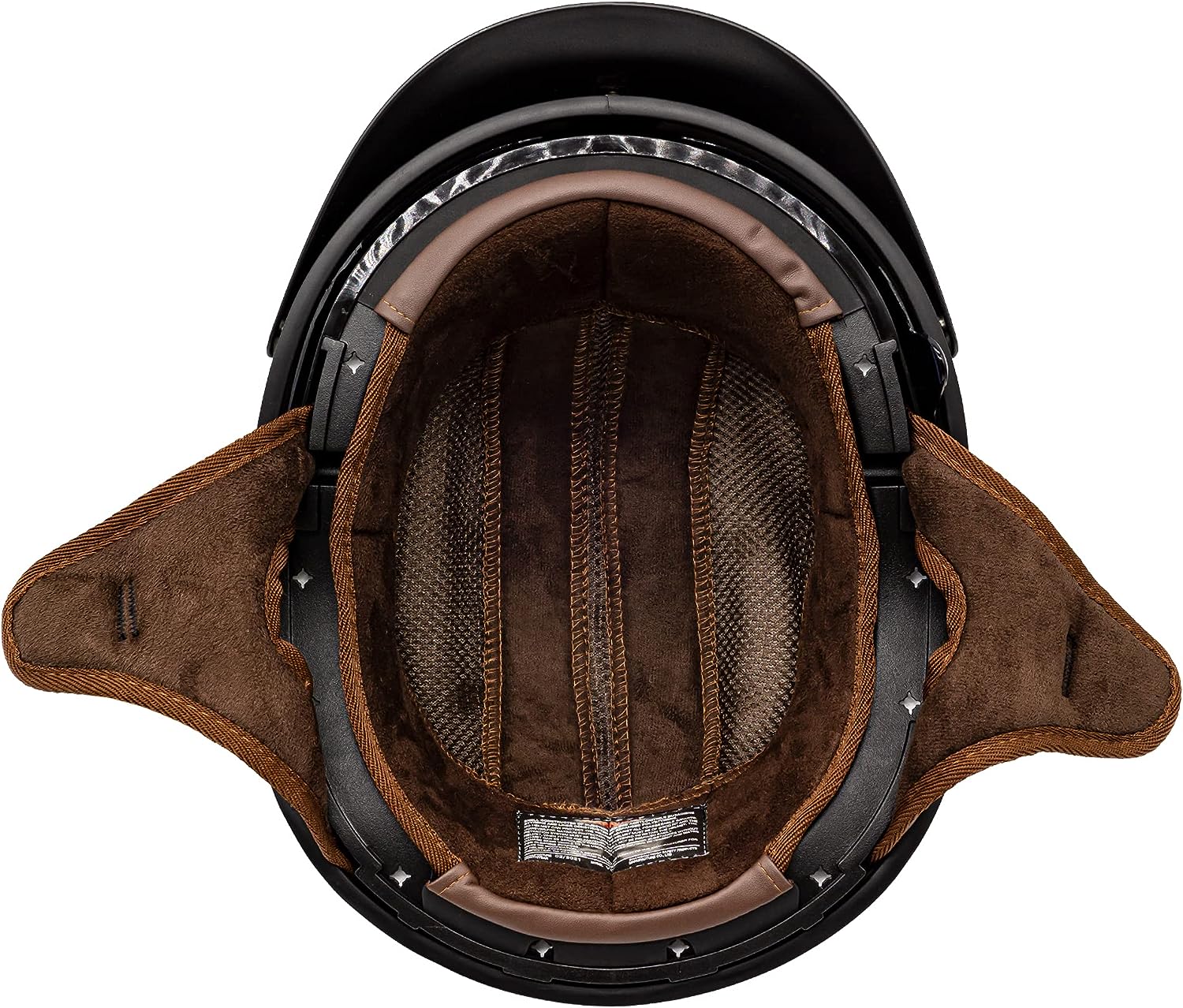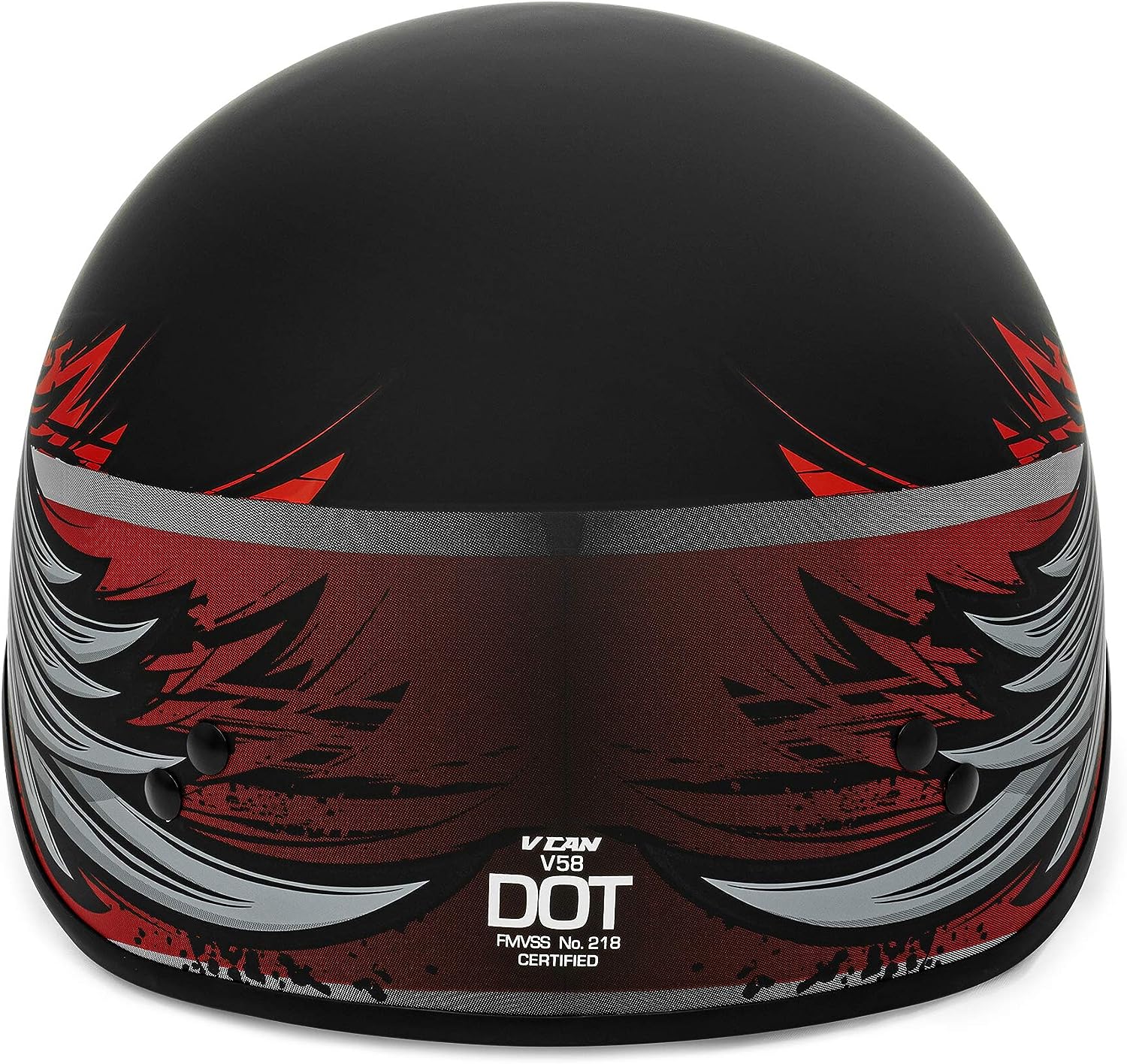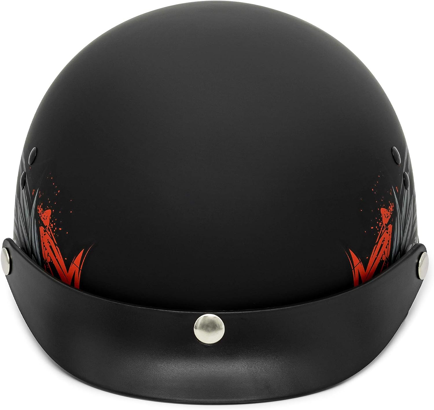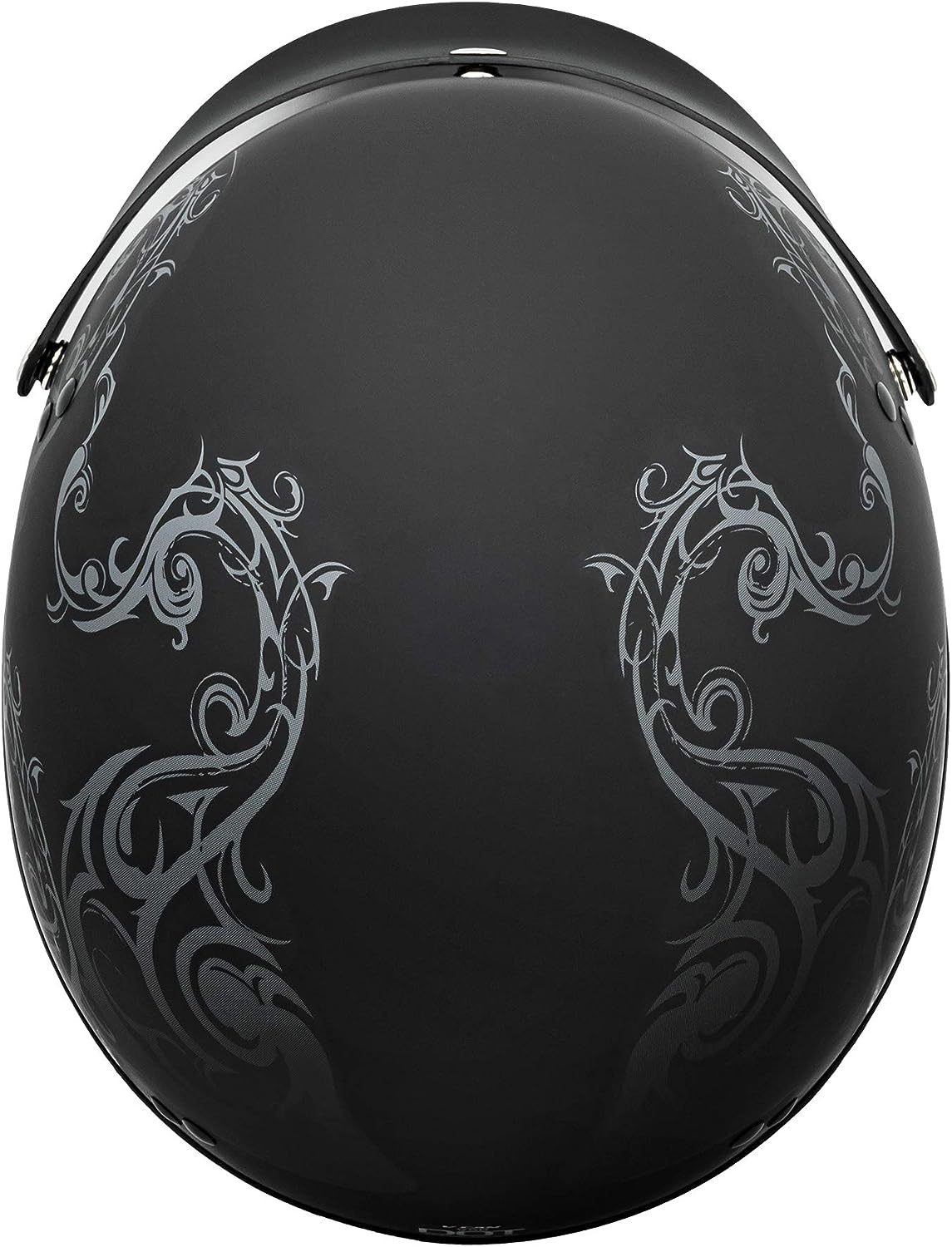 VCAN Cruiser Solid Flat Black Half Face Motorcycle Helmet with Drop-Down Sun Visor, Removable Peak and Quick Release Buckle