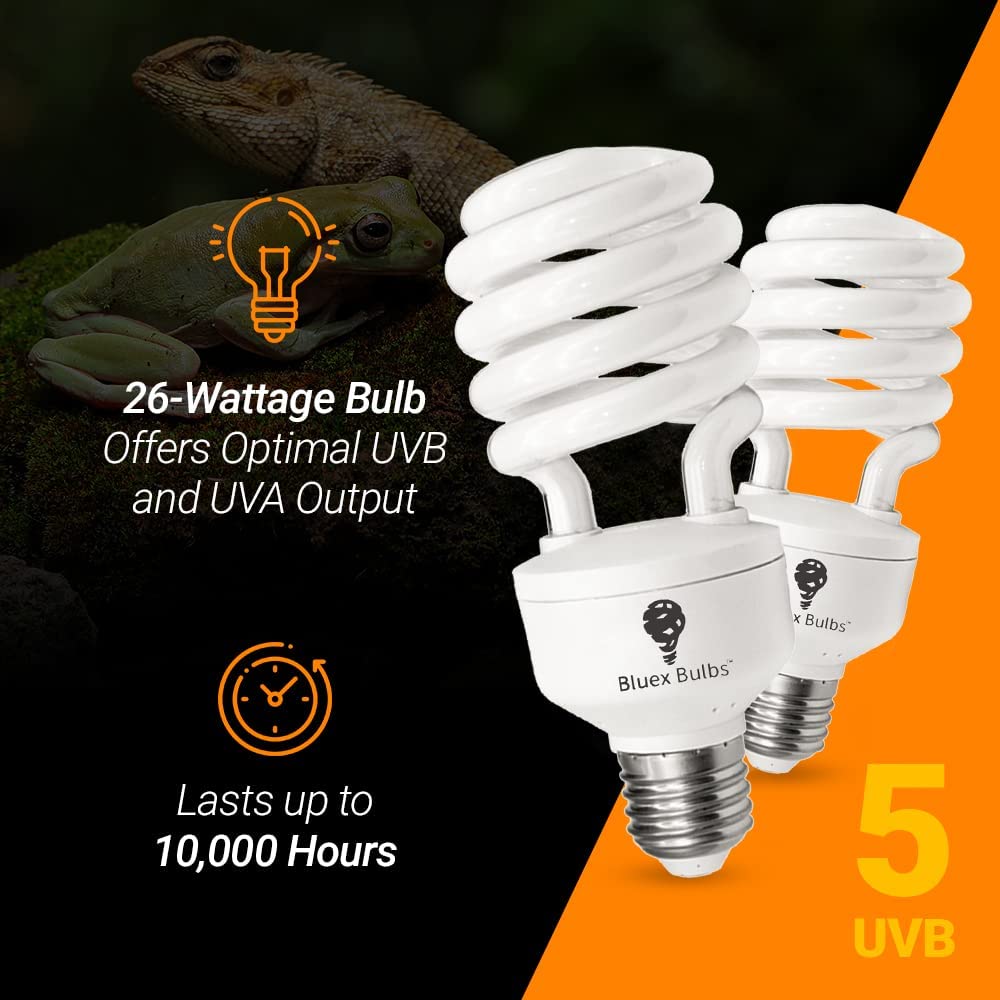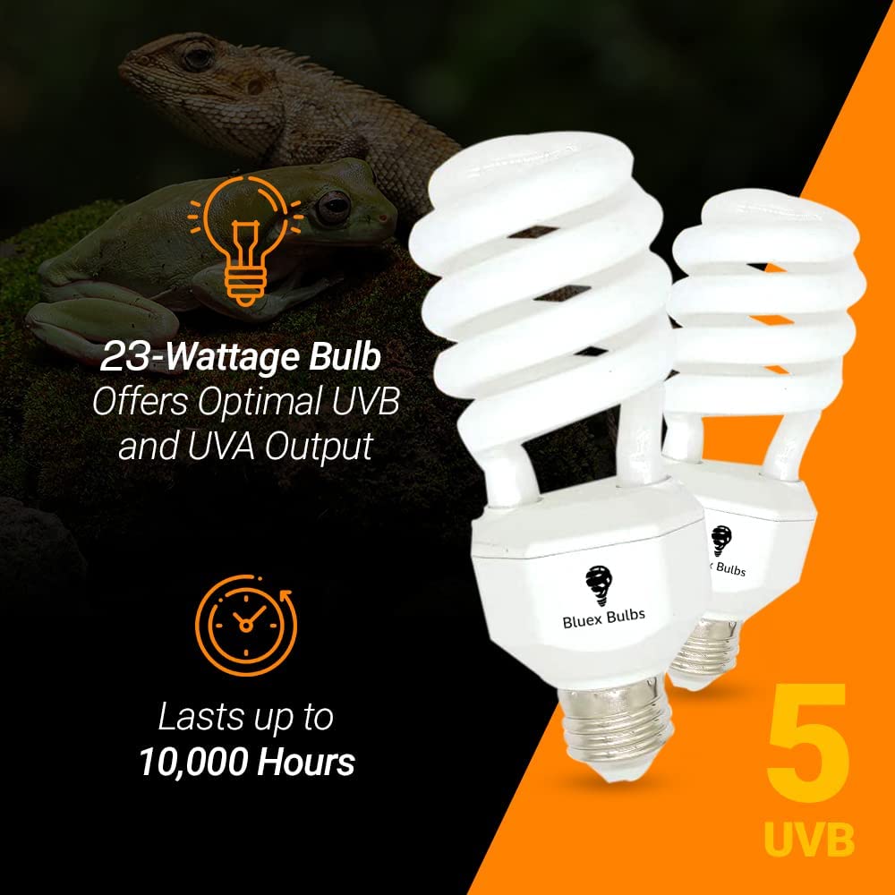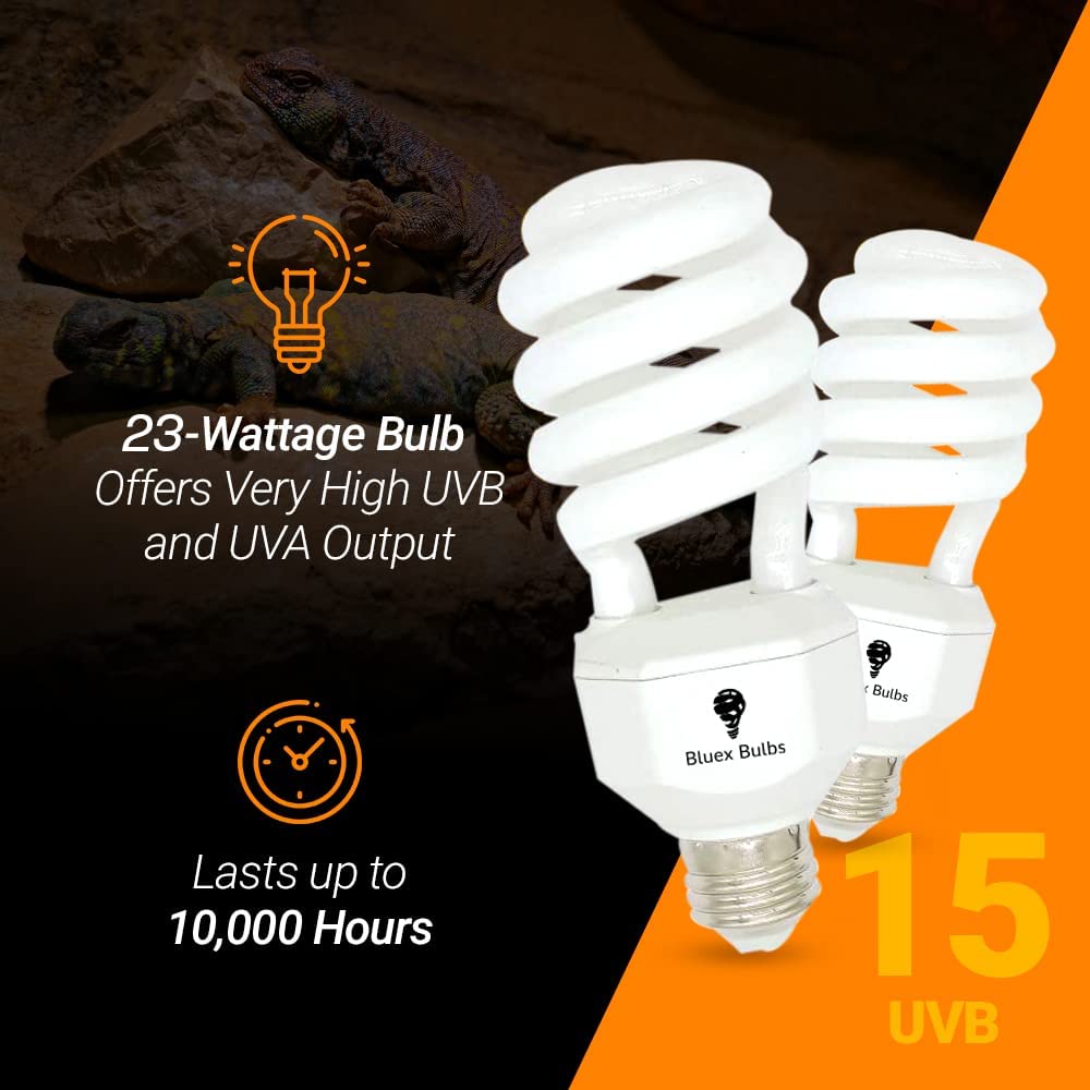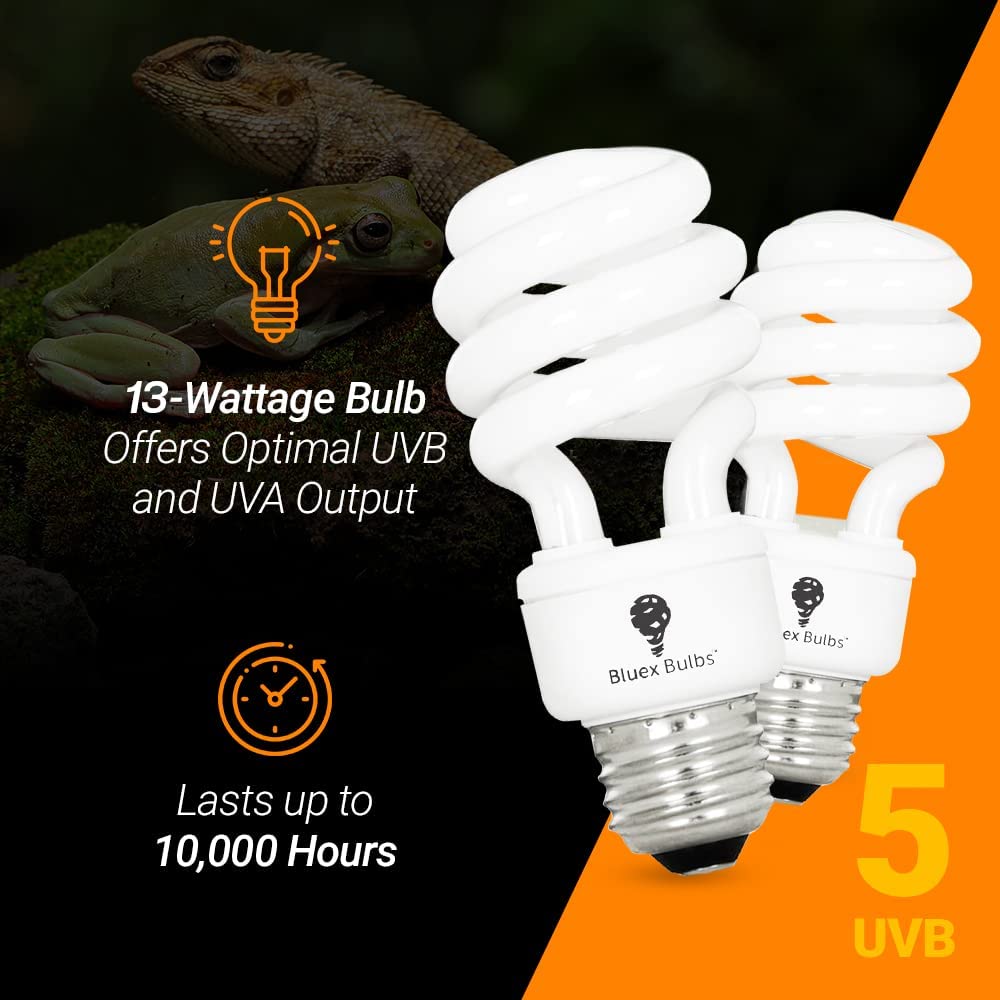 • Regulates Behaviors. Bluex Bulbs 13-Watt Desert CFL 10.0 UVB Light Bulbs for Reptile also provide the necessary UVA light which helps to regulate natural behaviors, including feeding, daily activity and movement, mating and similar activities.