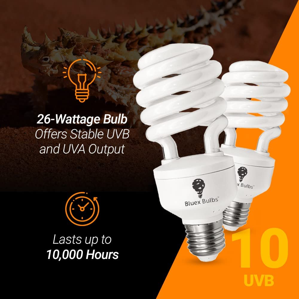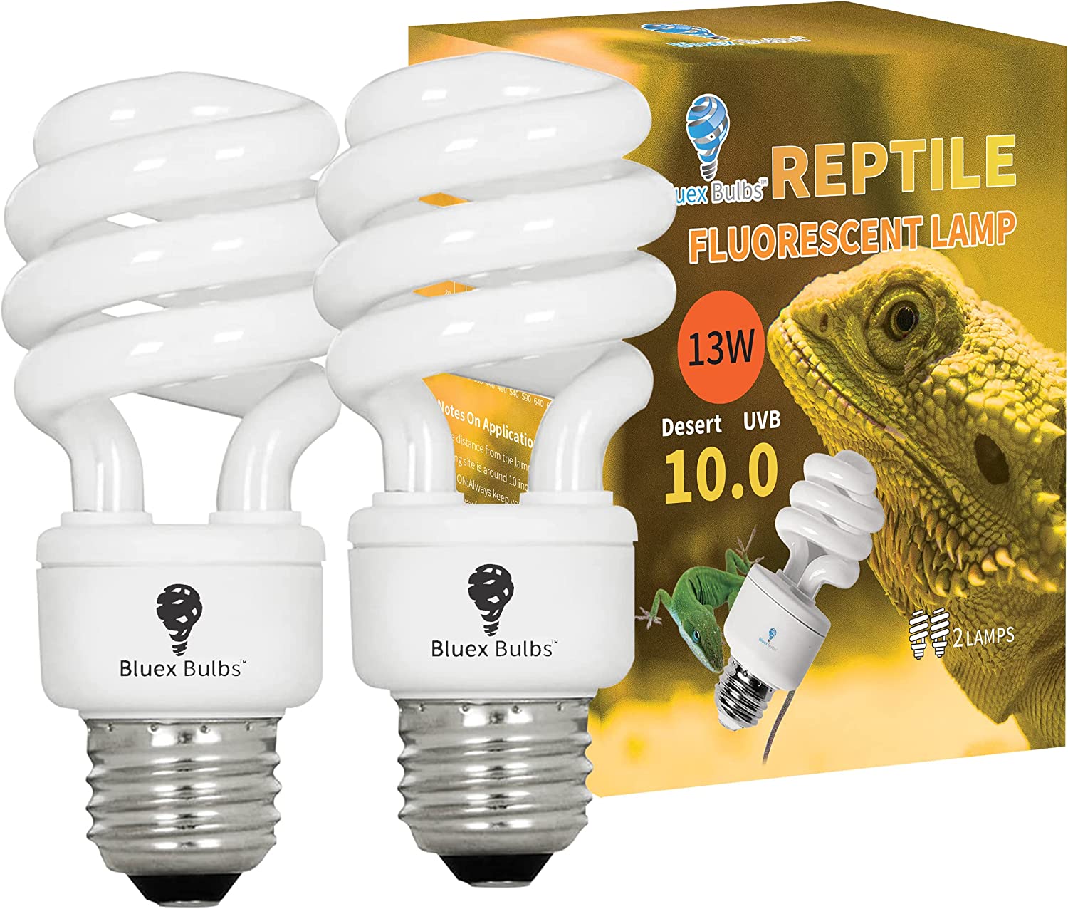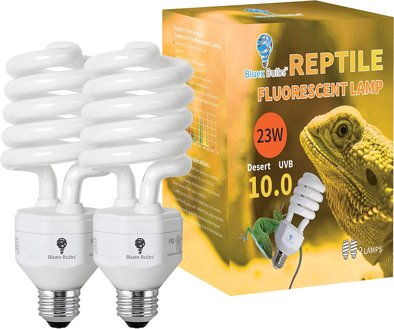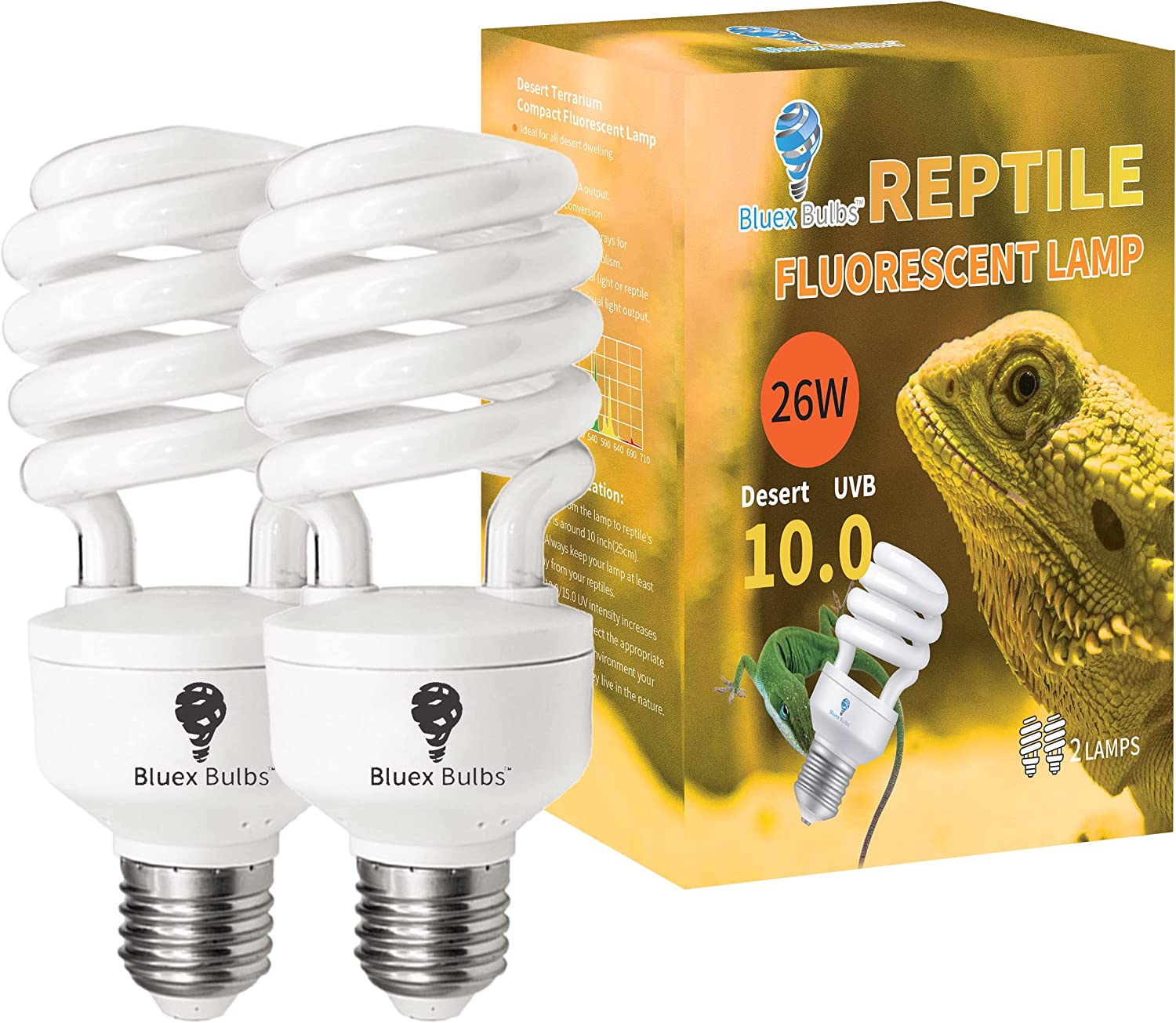 • Desert Lamp. Ideal for use with screened terrariums, Bluex Bulbs UVB 10.0 Reptile Light Bulbs are ideal for all desert-dwelling reptiles desert lights, including bearded dragon uvb light, tortoises and other lizard light bulb. Use them to increase natural behaviors and prevent illnesses.
