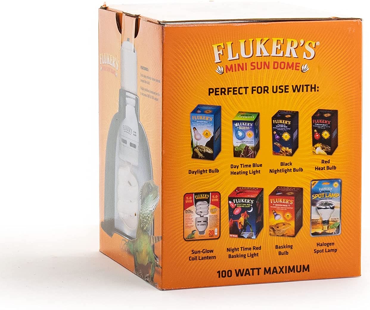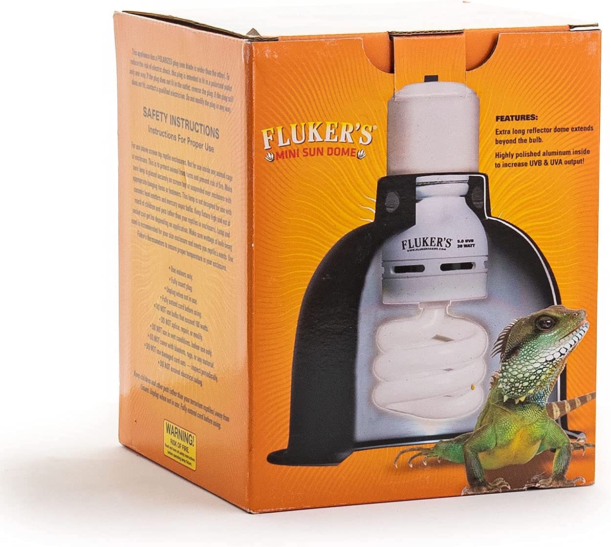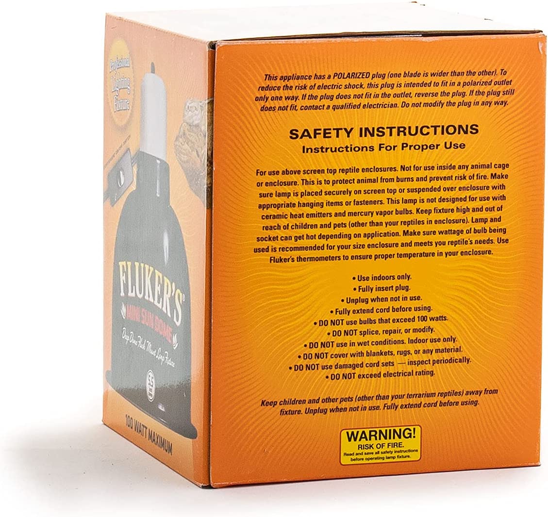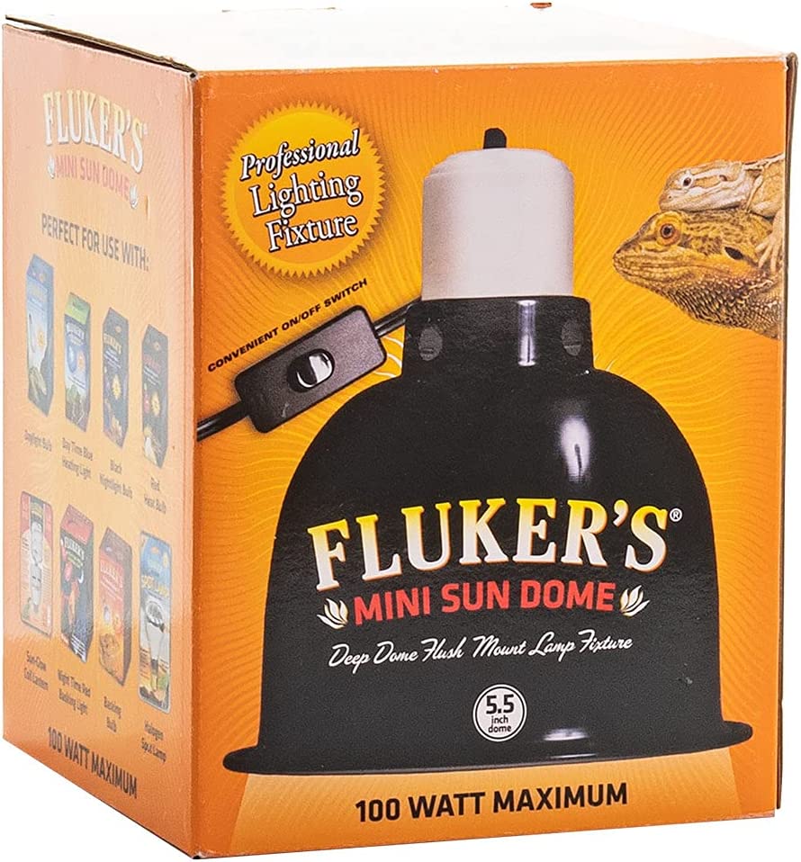 Fluker's Sun Dome is specifically designed to accommodate larger longer bulbs, such as Fluker's Sun-Glow bulbs. The dome extends beyond the face of the lamp so longer bulbs are contained within the fixture. The polished aluminum surface inside the dome increases UVB and UVA output to domes with interior white surfaces. Ceramic socket can be used with incandescent bulbs, ceramic heat emitters, compact fluorescent bulbs, and mercury vaopr bulbs. On/off switch included and rated up to 100 watts.