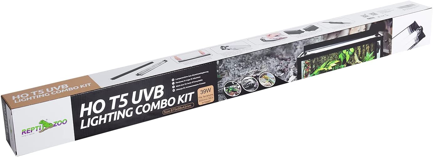 REPTI ZOO T5 HO UVB Lighting Combo Kit, Terrarium Hood Comes with Desert 10.0 UVB T5 Lamp (24W)