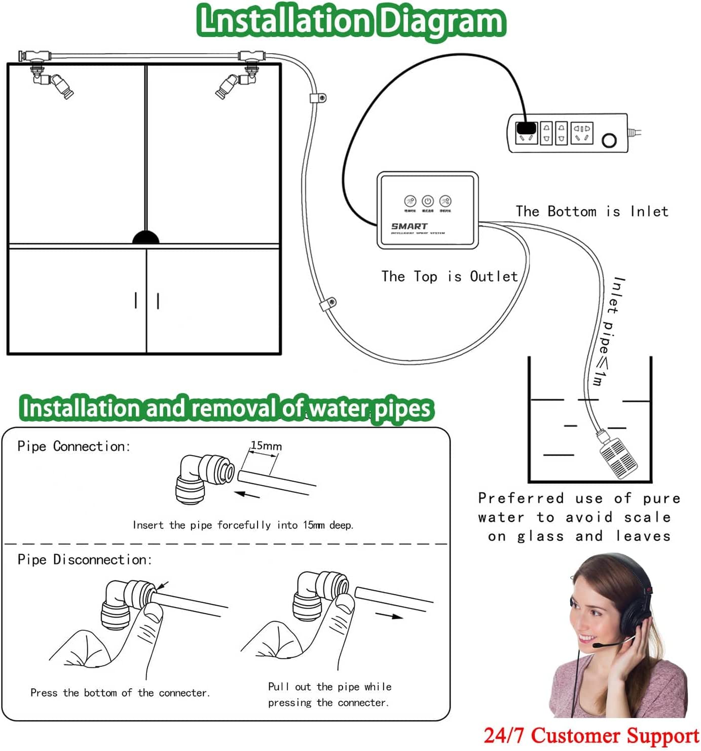 • 🐍【Easy & DIY Your Reptile Misting System】This reptile mister has updated the installation accessories and changed the machine inlet and outlet to a quick connect method, making installation easier and faster. reptile mister system is equipped with 2 suction cups and a hook to attach the machine to reptile terrariums or hang it in a more convenient location.