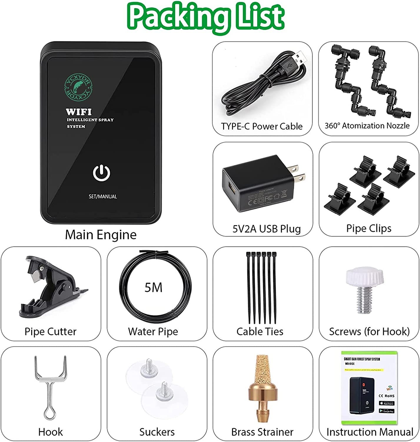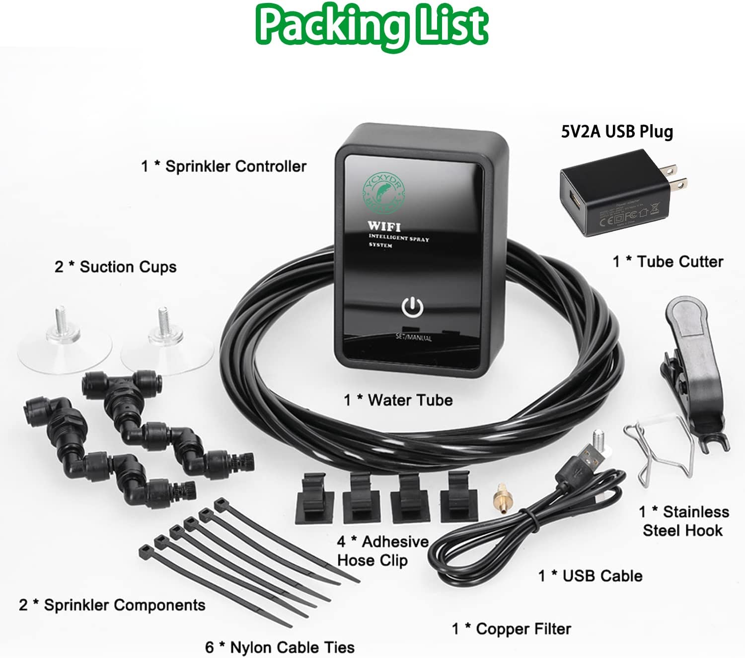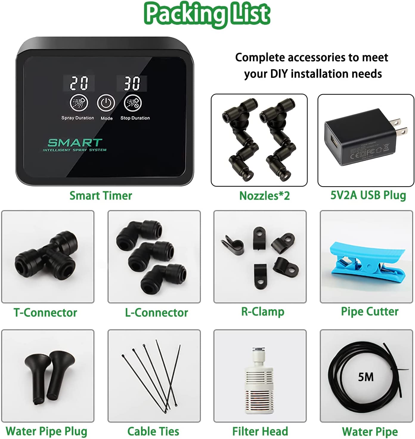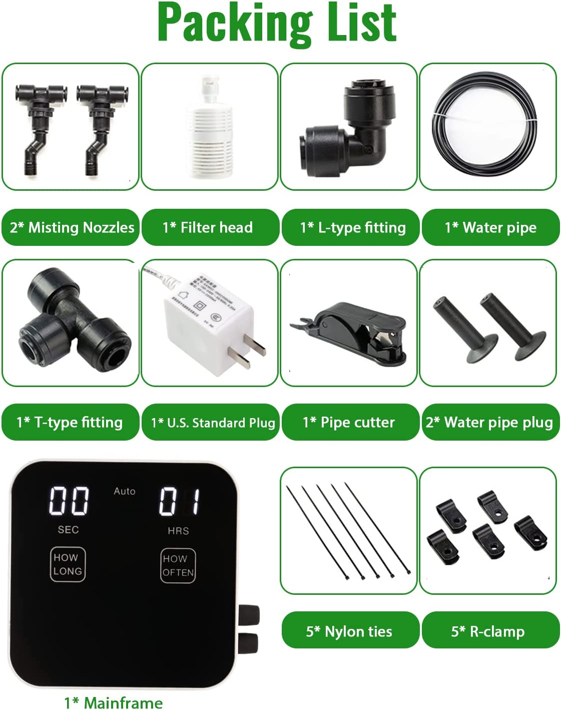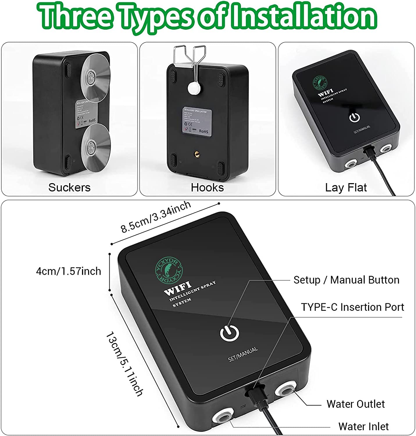 • 🍄【Widely Used in Various Scenarios】Our Reptile Misting System not only used in reptile pet -Chameleon/Lizard/Snake/Turtle/Frog etc. So as a Reptile mister humidifiers, perfect works for ecological rainforest atomization and humidification. Second, as terrariums humidifier mister also widely used to mist gardens, greenhouses, fan cooling, landscaping and so on. Third, as smart timer sprayer for plant waterer, etc.