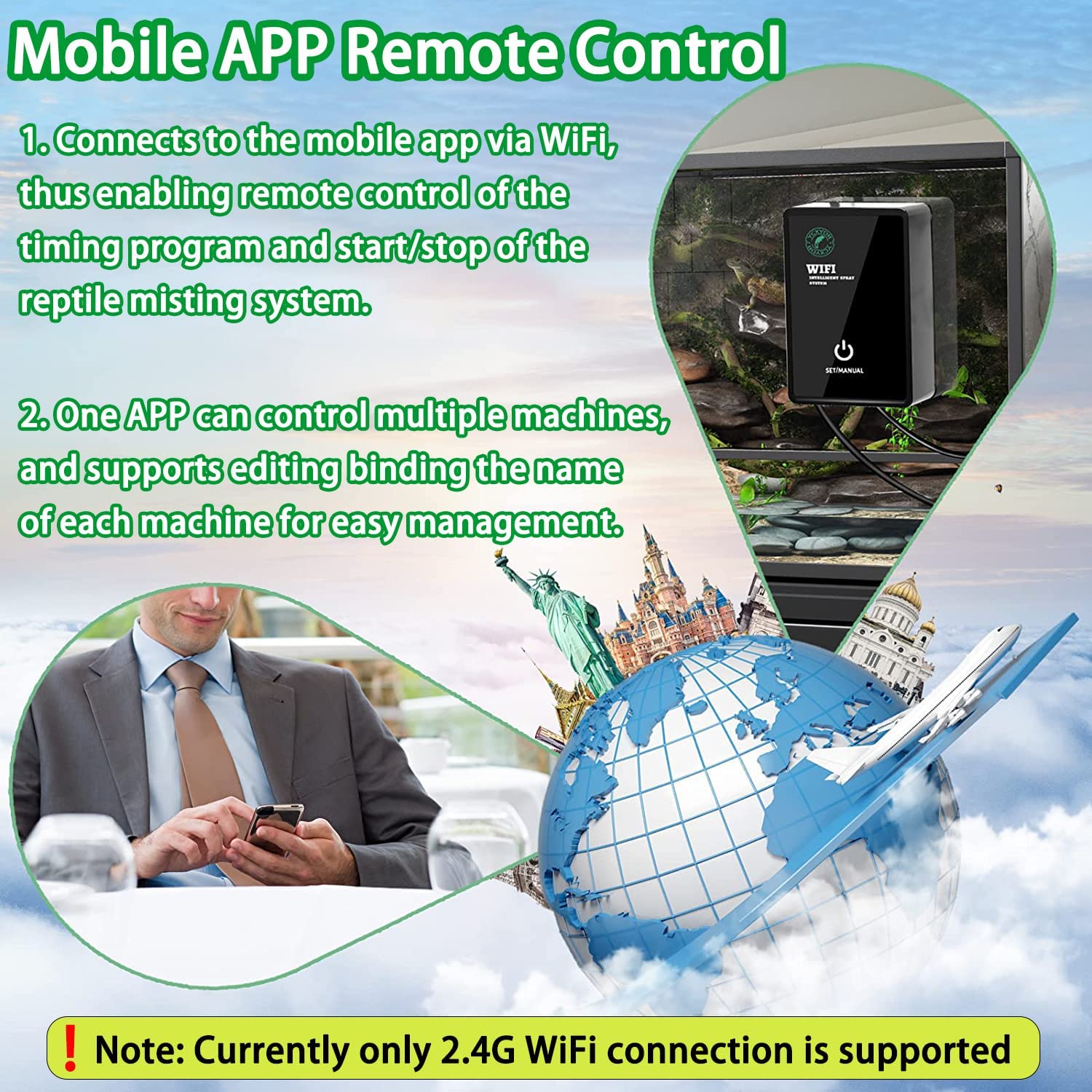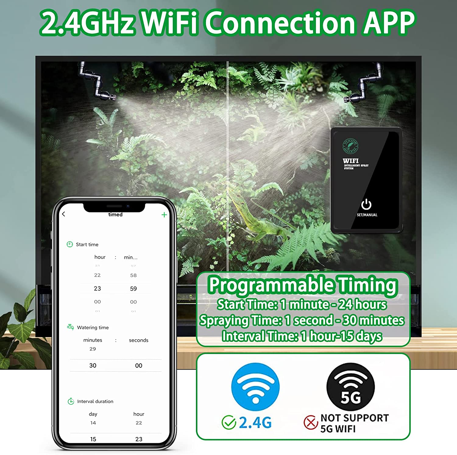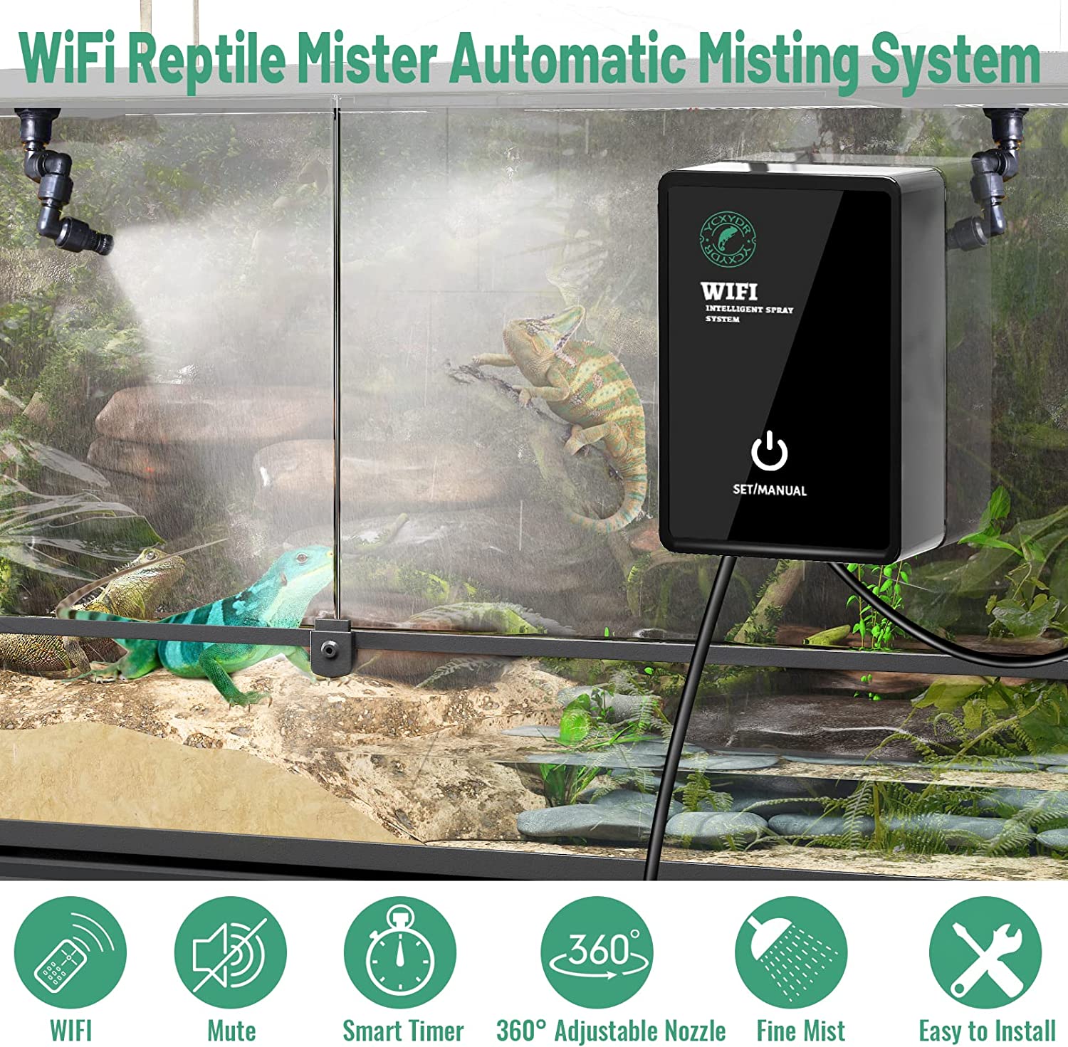 Reptile Humidifiers, WiFi Reptile Misting System APP Control, Quiet Reptile Mister Automatic Misting System, Terrariums Mister with 360°Adjustable Spray Nozzles, No Leaking, Easy to Use