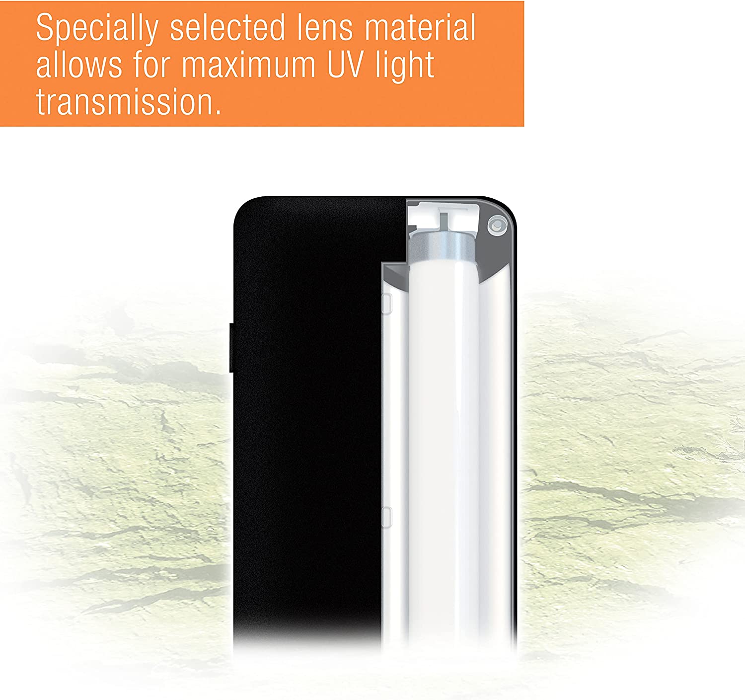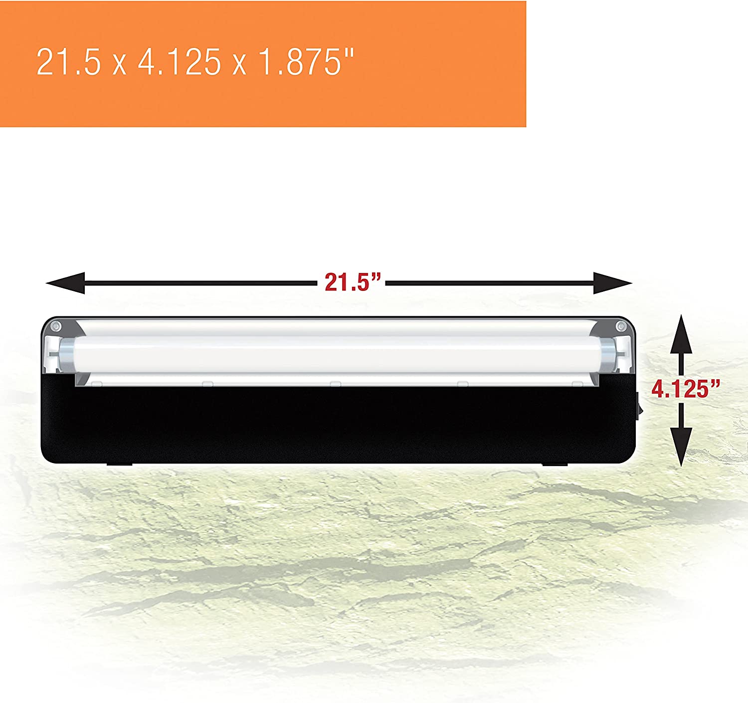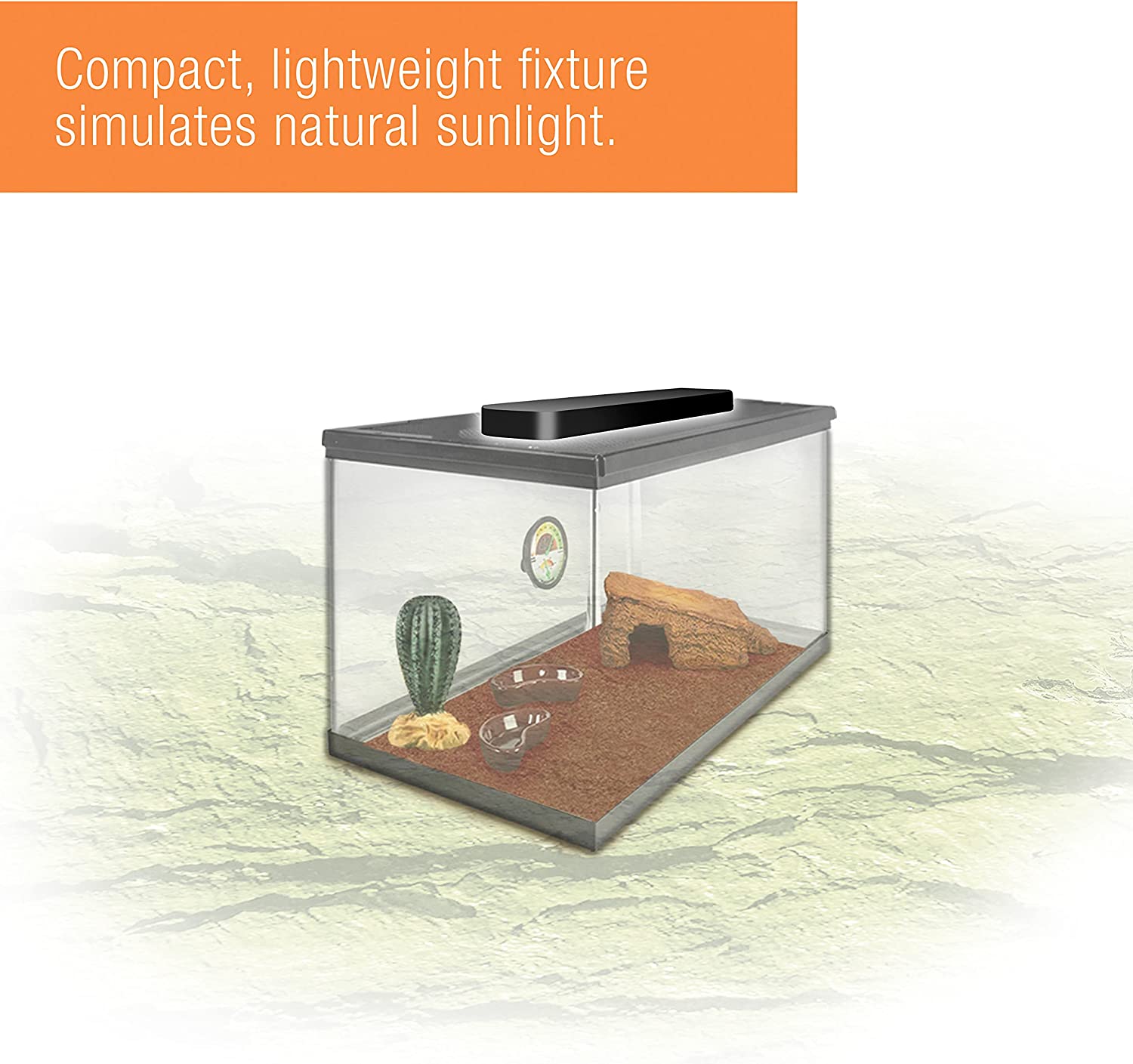 Zilla Slimlines offer high-quality fluorescent lighting in a convenient, ready-to-use fixture. Its compact and lightweight design makes it easy to install and is suitable for applications where space is limited. The UV transmitting plastic cover keeps dust and debris out while allowing UV light to come through. Available for both tropical or desert habitats.