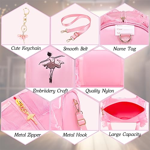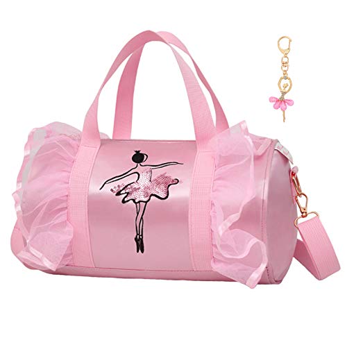 Dorlubel Cute Ballet Dance Bag Gym Travel Duffle Bag for Girls Tutu Dress Bag with Key Chain for Girls (Pink2 of Long Mesh)