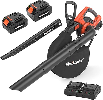 MAXLANDER Cordless Leaf Blower & Vacuum with Bag, 3-in-1 Brushless Battery Powered Leaf Vacuum Mulcher 40V 170MPH 360CFM 5 Speeds Leaf Blowers for Lawn Care 2x4.0Ah Battery & Charger Included