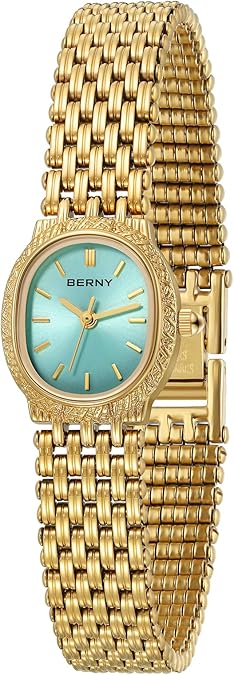 BERNY Gold Watches for Women Oval Ladies Small Watch Quartz Movement 3ATM Waterproof Female Wrist Watch Small and Exquisite Tools Included