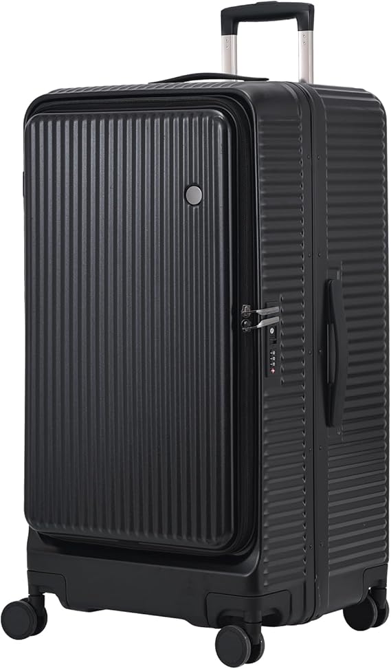 29 Inch Aluminum Checked Luggage with Side Opening Zipper, 40 * 37 * 77cm, 113L, Lightweight Hardshell ABS+PC Suitcase with TSA Lock, 360ë� Universal Wheels, Black