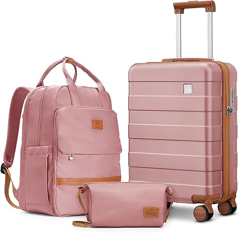 imiomo Hard Shell 20 Inch Carry on Luggage 3 Piece Set with Travel Backpack, Lightweight Hardside Carry-On Suitcase with Spinner Wheels and TSA Lock, Rose Gold