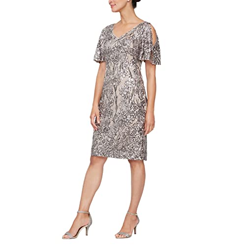 Alex Evenings Women's Short Cold Shoulder Flutter Sleeve Dress (Petite Regular), Mink, 6
